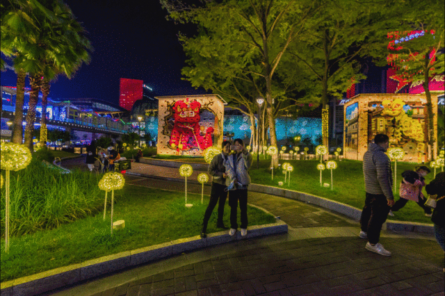 活水公园、市民广场、(虫雷)岗公园......在延绵几公里长的千灯湖公园内,还能随机偶遇红红火火的新春灯饰。
