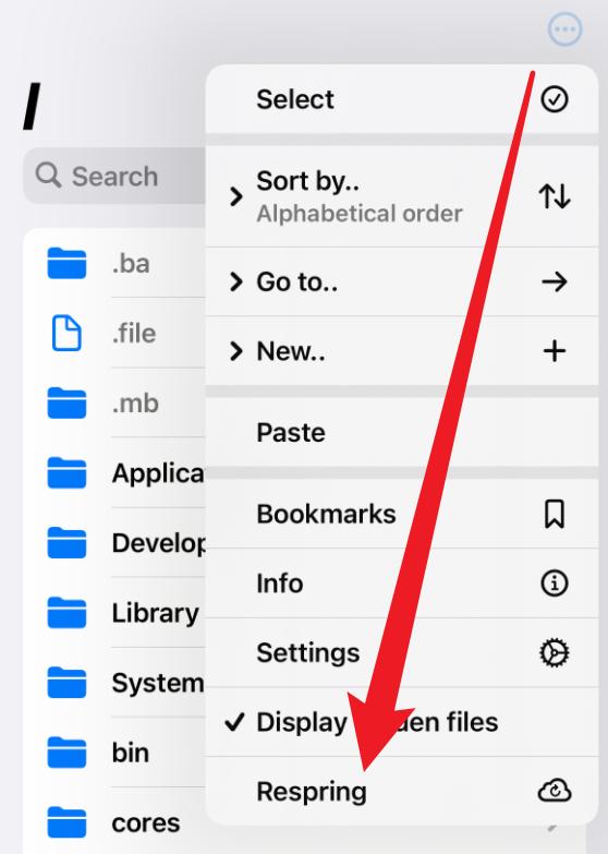 最后回首页,点击右上角的 “ Respring ” 就算大功告成,这个时候等到 iPhone 重启完成,我们就能看到灵动岛已经出现在界面当中。