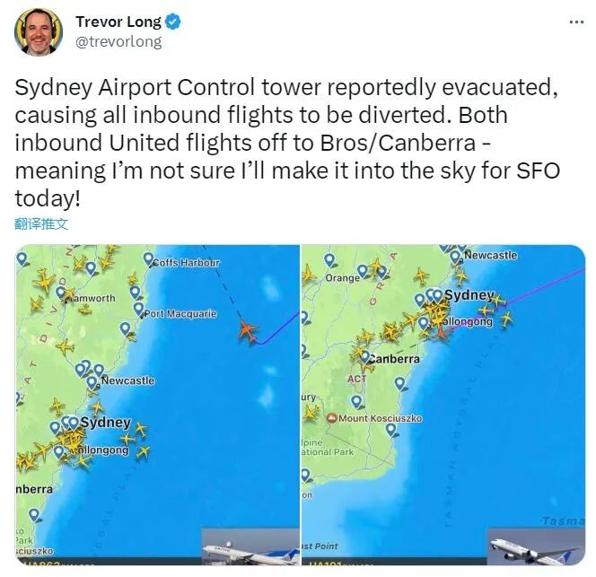 “正准备乘机从堪培拉前往悉尼,但工作人员告诉我悉尼机场的塔台着火了。”