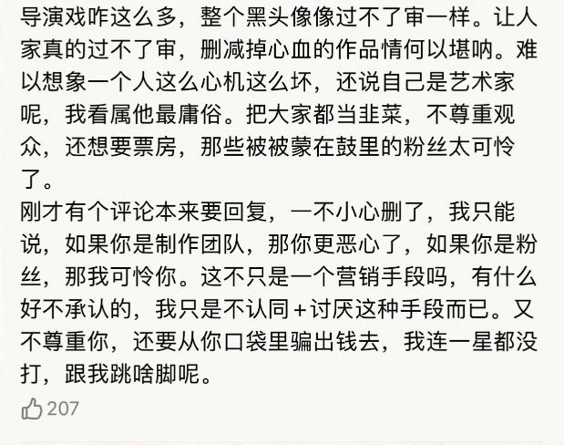 其实,导演对电影存在的问题早有预判,也对后果做好了一定心理准备。