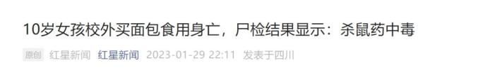 据红星新闻最新报道:广东湛江徐闻县10岁的小学生吕思思,去年9月食用校外面包店的面包中毒,住院20多日后经抢救无效身亡。思思去世后,当地公安查明死因系氟乙酰胺类杀鼠药中毒死亡。