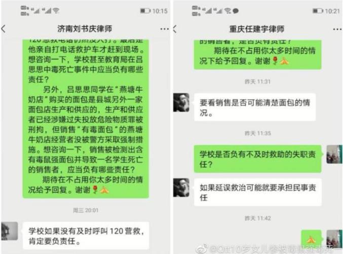 网友部分原文我10岁女儿吕思思,是广东徐闻县徐城镇第二小学五年级二班的学生。9月20日早上,我女儿上学时在学校门口一家燕塘牛奶店里购买一个含有毒鼠强的面包带回教室吃后中毒昏迷,送医院抢救22天后不幸离开人世,还给我留下了20多万元的医疗欠费。