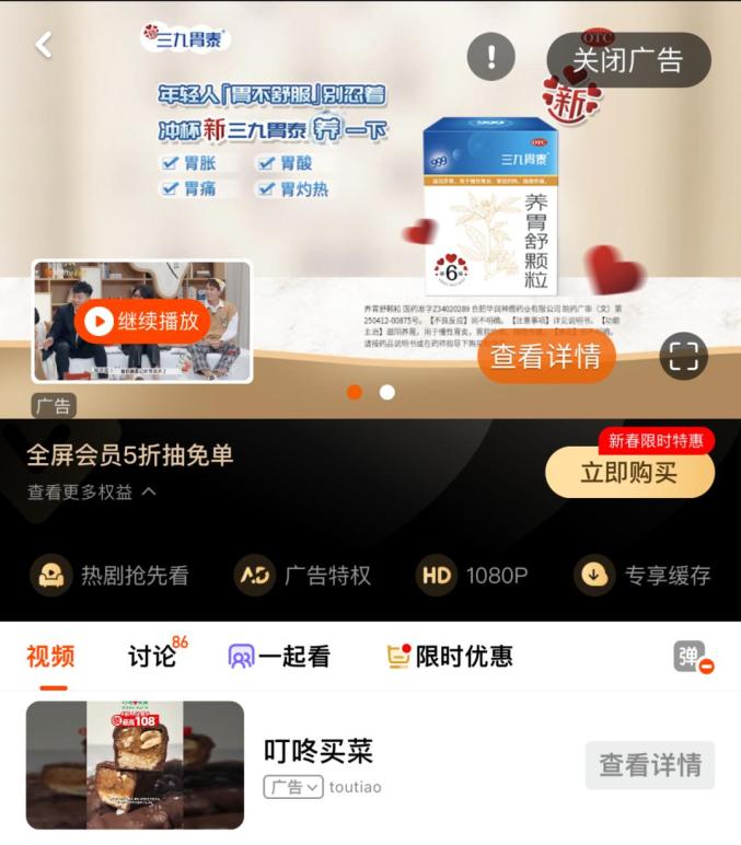 △暂停视频后,广告铺满整个页面付费观看