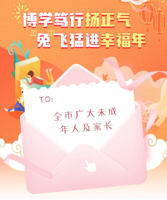 纸短情长,言轻意重。保护未成年人合法权益需要各方面尽心尽责、密切配合、齐抓共管,尤其需要广大未成年人及家长提高自我保护意识。我们愿与家长守望相助,共同呵护未成年人健康成长,为孩子们的童年、青春保驾护航!值此新春佳节之际,我们真诚地向全市的未成年人说一声:“新年快乐!”同时向家长朋友们道一声“辛苦啦!”祝大家家庭和睦、幸福安康!