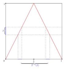 在求解这个问题之前,我们指出帐篷映射的一个明显事实。给定[0,1] 的任意一个子区间I,由下面的图示