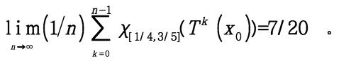 就是n个迭代点中落到区间[1/4,3/5]的点的相对频度。我们的目的是求出整个无穷迭代点列中进入[1/4,3/5]的那些点的频度,很自然就必须取n趋于无穷大时上述相对频度的极限了。假如极限