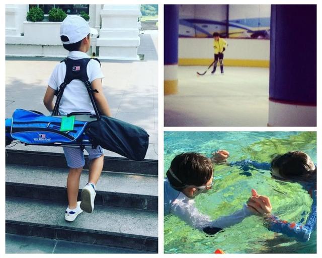 5岁多的Jayden就能熟练掌握攀岩、滑雪、冰球、马术等高端运动,甚至还参加过高尔夫球比赛。