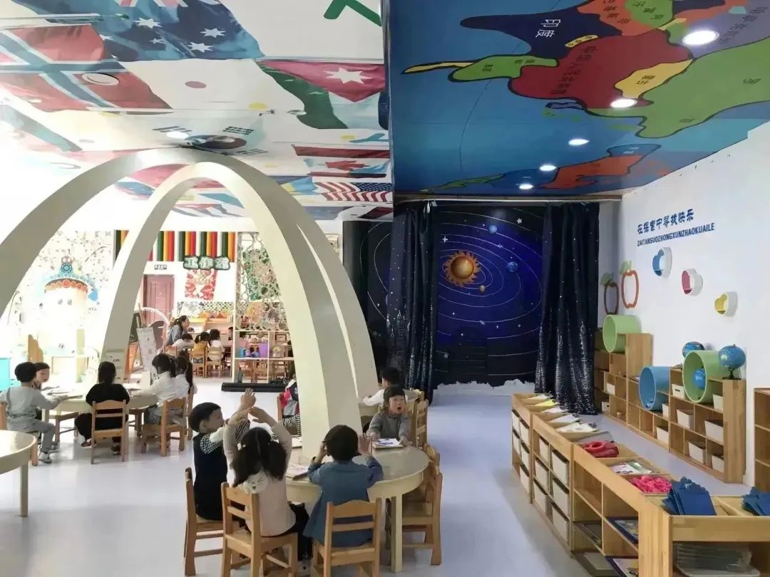 在校园内多点设置材料超市,创造性提出“空环境”,适当“留白”,让儿童在各种“空环境”中自主选择“材料超市”中的材料进行“平地造高楼”,激发儿童的创造力和想象力。同时,打造满足儿童多元需求的功能室,“未来教室”配备各类现代智能化设备,为孩子打开了探索未来世界的梦想之窗;“星际科探室”提供沉浸式星际探索体验,为孩子创设“与生命相遇、心灵相约”环境;现代化多功能厅可供开展电影节、大型主题游戏、文艺展示、培训研讨等活动,进一步丰富幼儿校园生活。