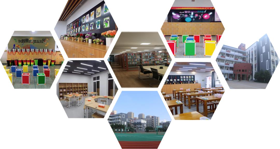 在拥有配套达标、规范的教室、功能室、多媒体辅助技术、操场等设施设备基础上,本着“绿色、生态、可持续发展”理念,对学校空间和设施的改造,以“安全、绿色、趣味、人性化”为设计原则打造了电视台、行健馆、科技 STEAM 厅、行健小舞台、比特实验室等,校园绿化面积达12000平方米,为学生提供了充足且友好的学习、阅读、美育、科技等空间。利用学校空白空间,通过丰富的走廊文化、功能室文化、教室文化将教育元素可视化、可感化。