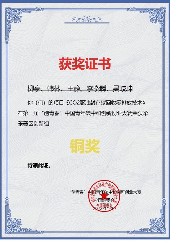 供稿:石油工程建设公司原标题:《喜报!石油工程建设公司在第一届“创青春”中国青年碳中和创新创业大赛中喜获佳绩》