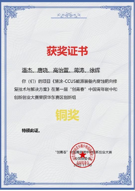 项目名称:慧涂—CCUS能源装备内腐蚀靶向修复技术及解决方案申报单位:石油工程设计公司
