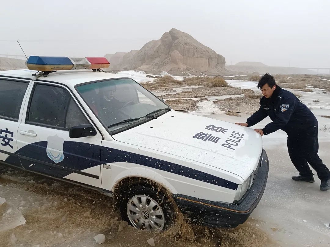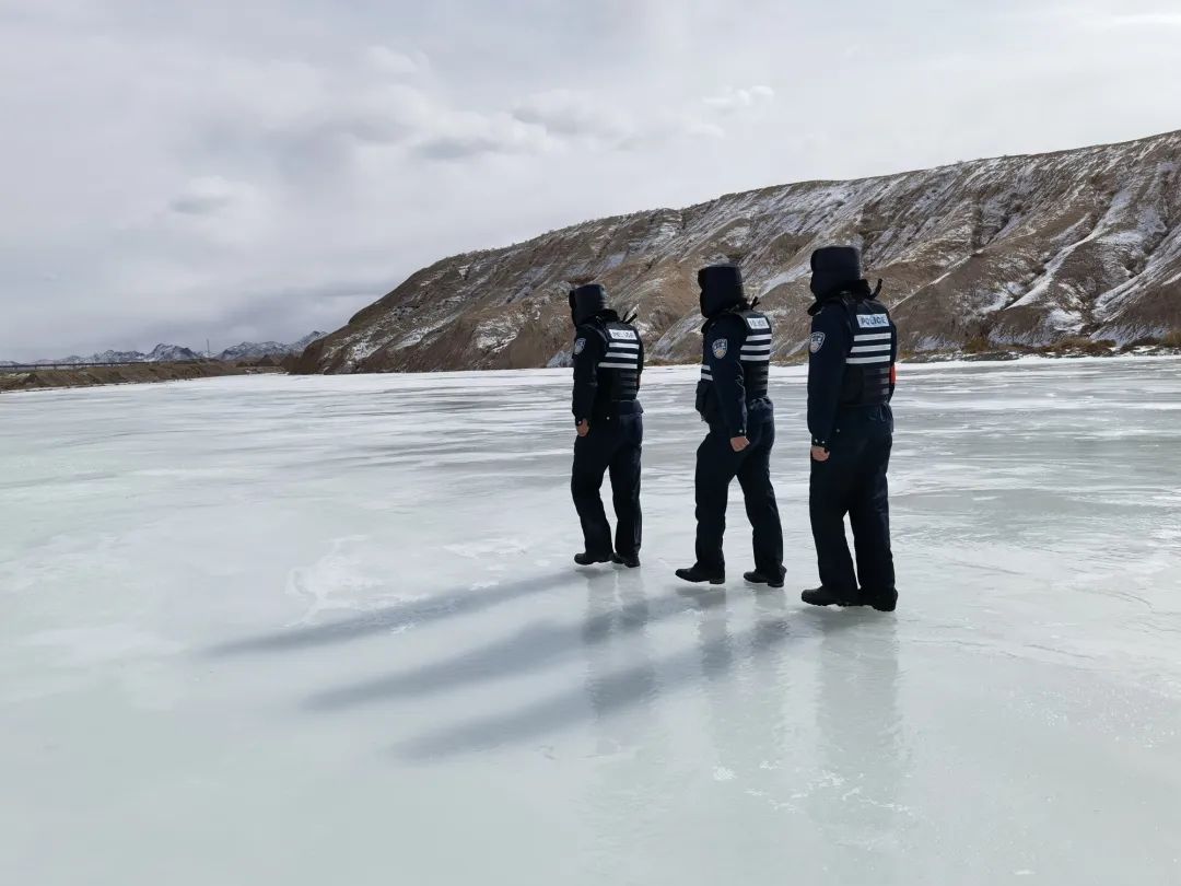 民警徒步穿越冰河,对辖区重要桥梁、隧道、涵洞进行安全检查。常彦东 摄“上车!”随着副教导员雒宏亮一声令下,一天的线路安全巡查开始了。当天的工作任务是对阿尔金山隧道至七面峰4号隧道出口间近70公里12个隧道的安全实况进行实地踏勘。
