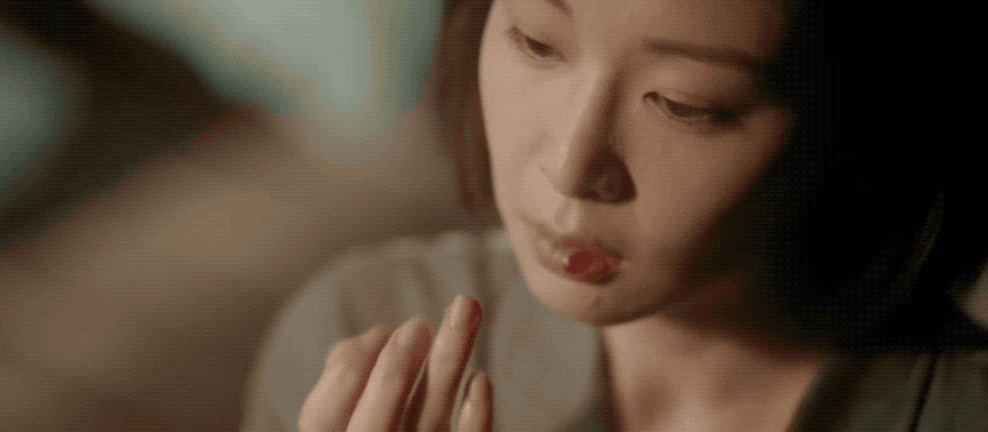 女囚犯褚英子的戏份不多,只一幕咬破手指、血抹唇上的操作,便已将杀人犯的癫狂展现。