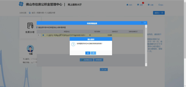 12、如房屋存在未还清的购房抵押贷款,还需填写和完善贷款信息。确认房屋信息无误后,点击确定进入下一步。