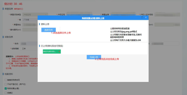 10、上传对应的档案资料。例如点击购房发票,出现对话框如下图: