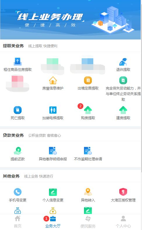 外市房屋购买住房提取页面如图: