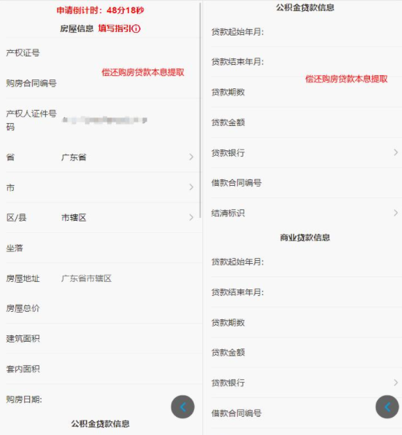 外市房屋偿还购房贷款本息提取页面如图: