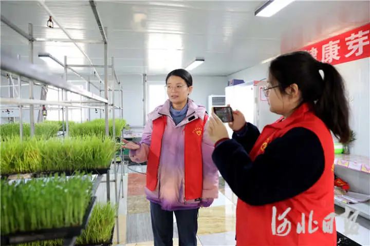在调河头镇南郭庄村,鑫目农业合作社的芽苗菜无土栽培温室内,镇助农小分队正在和农户交流产品宣传视频拍摄细节。通讯员高语婧摄“今天,我为大家推荐的是无土栽培芽苗菜,生长过程不用施肥、不打农药,下厨后颜色青翠、味道鲜美……”近日,在位于廊坊市安次区的鑫目农业合作社无土栽培温室内,调河头镇助农小分队成员苏灿灿手捧芽苗菜,化身“带货主播”,与网友频繁互动,吸引众多人点赞关注、下单购买。