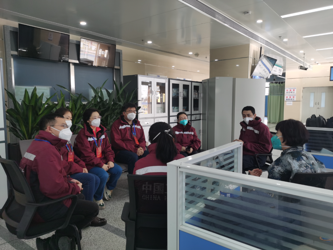 西安市精神卫生中心派出的心理援助队员开会讨论心理援助方案。
