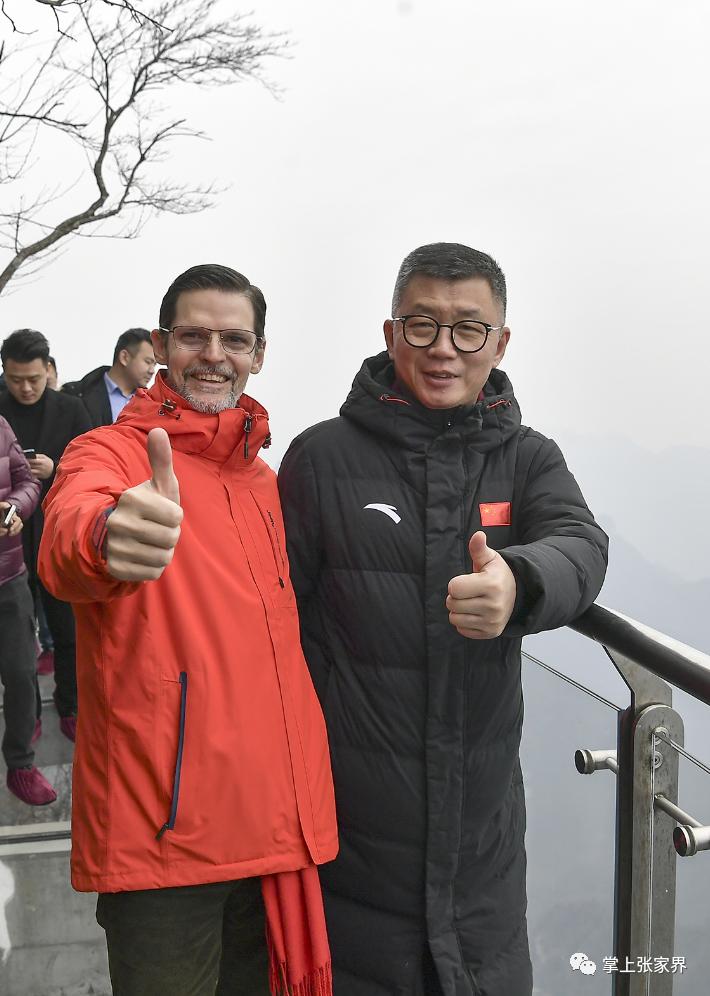 2月1日,阿根廷驻华大使牛望道携家人到访张家界天门山风景区,大使一行先后游览了鬼谷栈道、穿山扶梯、玻璃栈道、天门洞等,并偶遇了中国著名翼装飞行运动员张树鹏,亲身试穿体验了翼装飞行服,感受翼装飞行这项极限运动的魅力,同时对天门山的神奇自然风光啧啧称奇,赞不绝口。全媒体记者 邵颖 摄