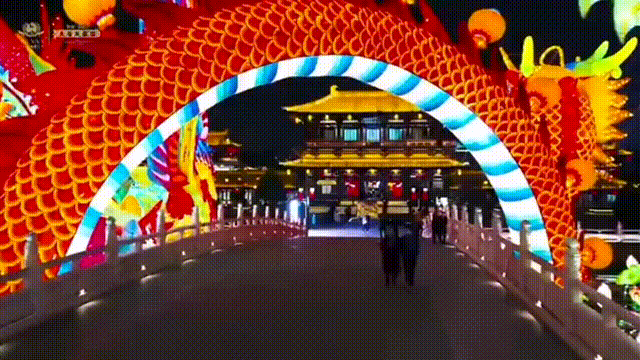 也不仅仅是诗词灯串,大唐芙蓉园新春大潮会,30余组风格迥异的主题灯组。也再次伴随着芙蓉夜色舞动于芙蓉桥之上,而在灯展中寻找一句古诗词,想必也是件容易的事。