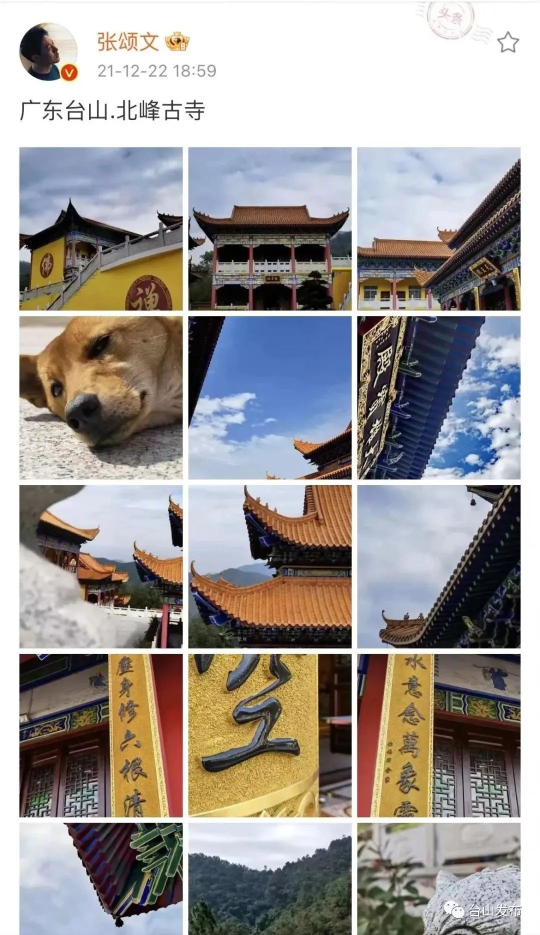 另外在剧组休息的时候,张颂文还专门去逛了颇有意境的北峰古寺。