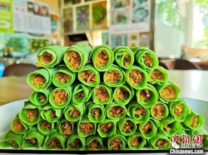 五丰村的印尼斑斓条是最富特色的东南亚小吃。作为东南亚常用的香料之一,斑斓叶有着天然独特的芳香味,还有降血脂、抗衰老、抗肿瘤等食疗价值。经过村民的不断创新,目前还开发出斑斓饮品、斑斓糕点等特色小吃。