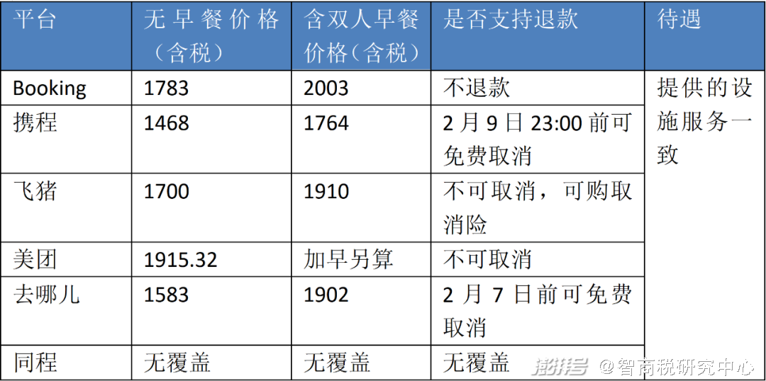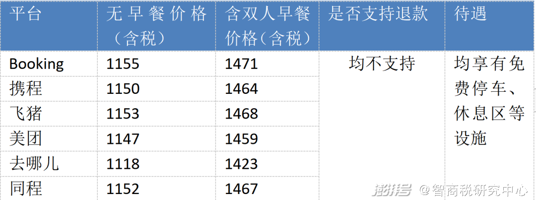 它们提供的服务也有一定差异,大部分是需要到现场支付早餐费用,不提供专门的含早预定价格,仅有飞猪和同程的代理渠道提供含早套餐,价格也有一定差异。