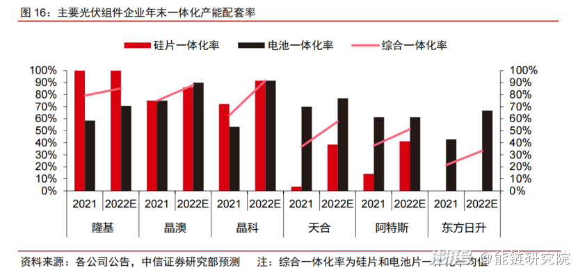 此后,晶科、晶澳、天合、阿特斯陆续完成产业一体化,逐步追上步伐。