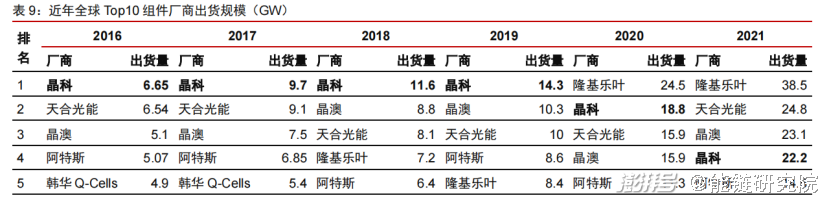 首先,从近年来出货排名来看,自16年起,晶科、天合、晶澳、阿特斯前五排名稳固。唯一的一个变量就是隆基的崛起。此外,难觅其他新晋企业。