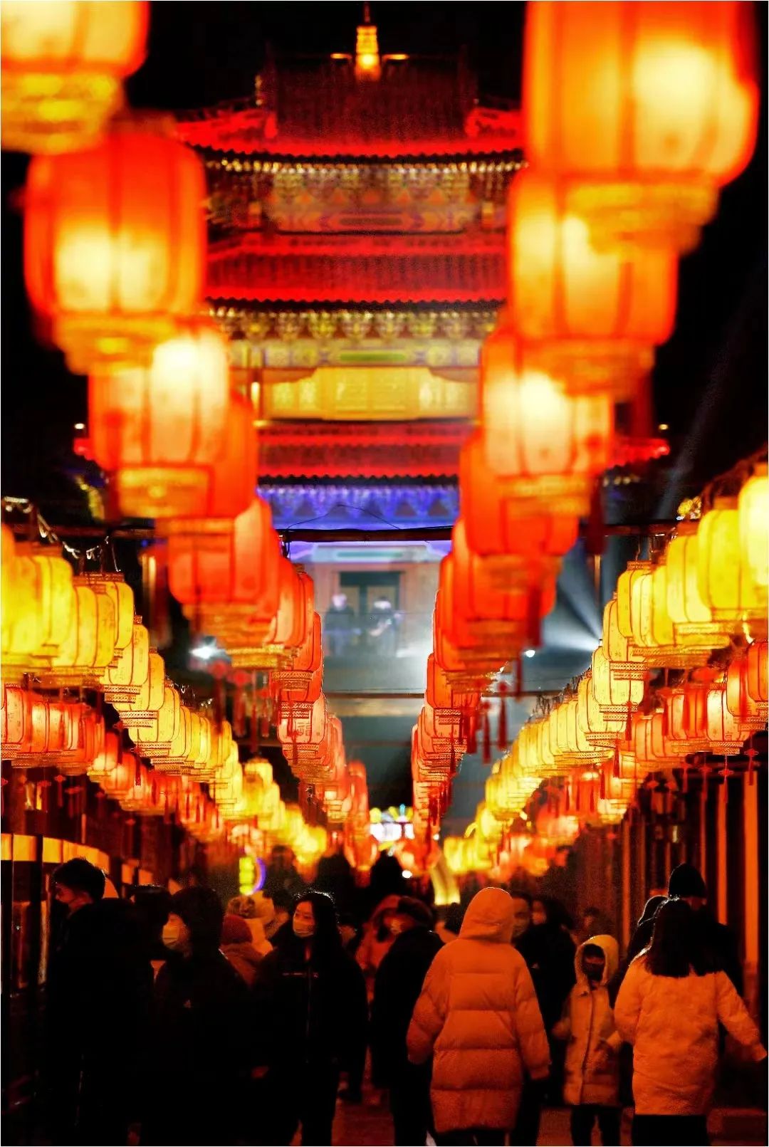 人们穿梭于花灯长廊