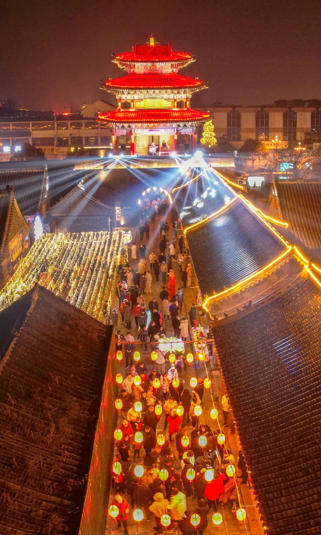 夜幕下万盏彩灯亮起,进入一片灯的海洋