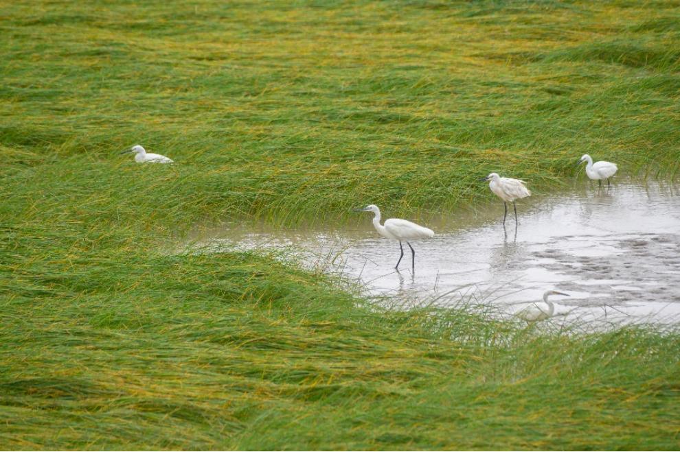 横沙 郑运祥摄小微湿地是指面积在8公顷以下的小型湖泊、水库、坑塘、人工湿地、河溪、沟渠等。在中国传统湿地文化中,也有很多"圩、塘、浦、港、泾、浜、溇",代表着一类在长期演变过程中形成的较稳定的小微湿地,在庇护生物、调节洪水、净化水质等方面具有重要功能。