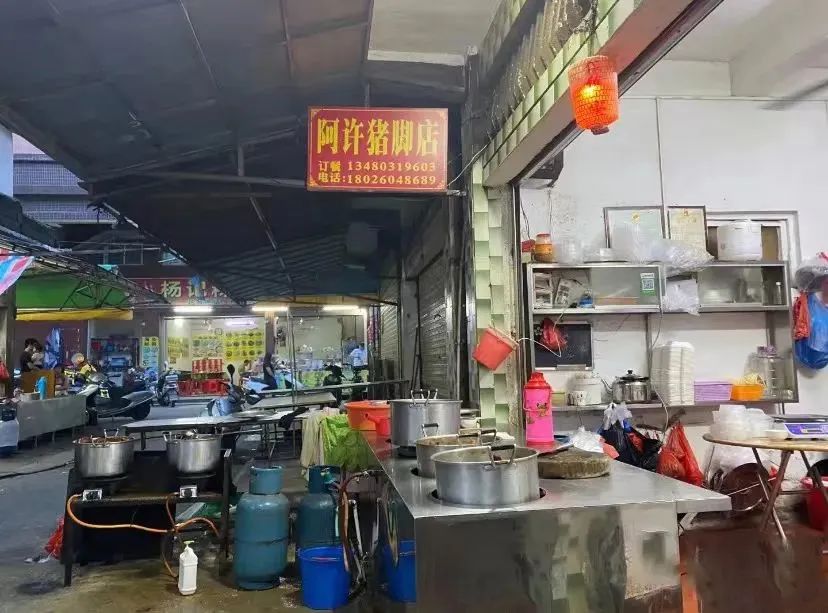 在瞧妹心中,隆江唯一可以与猪脚兴味道平分秋色的就是位于农贸市场的阿许猪脚店了。