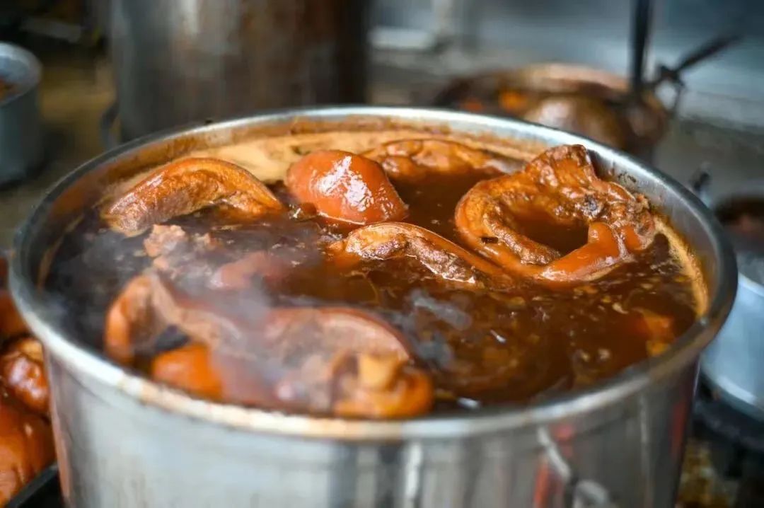 一锅浓香的老卤水是30多年的保留与传承,猪脚在这锅老汤中翻滚着,像是找到了归宿。