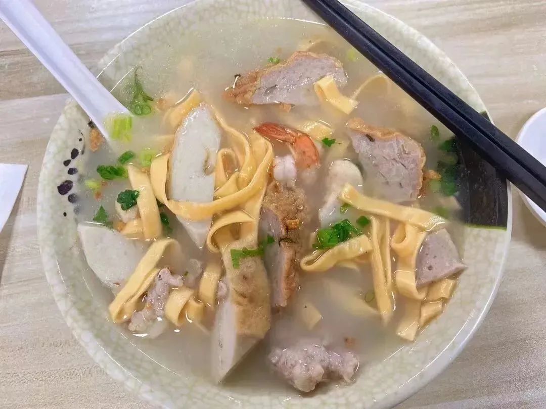 一碗粿条汤,有杂丸、鸭杂等不同风味,看起来清淡实则无比惊艳。紧实的粿条邂逅浓郁的高汤与爆汁的丸子,地道风味浓烈,如注入灵魂般让人欲罢不能。