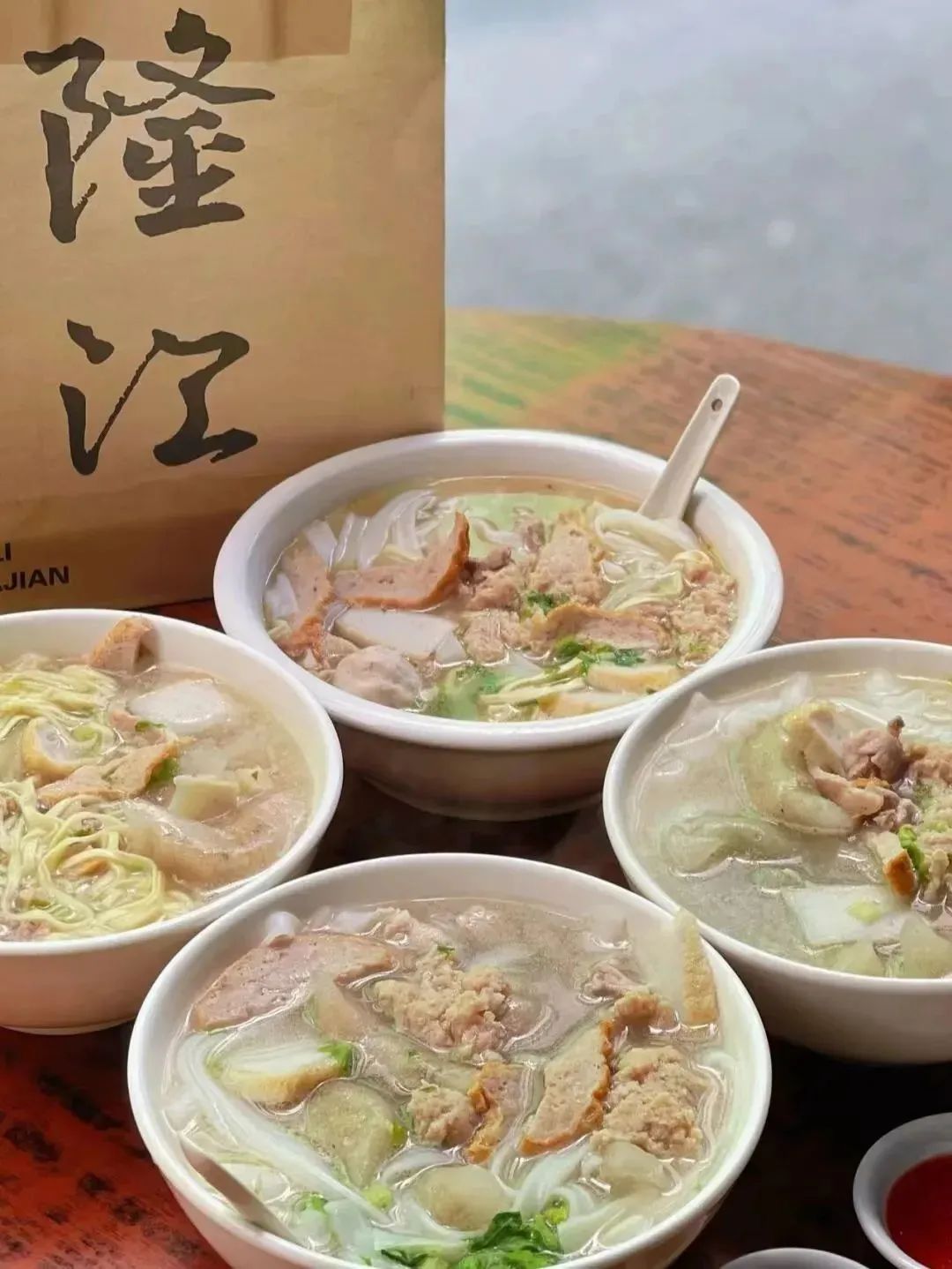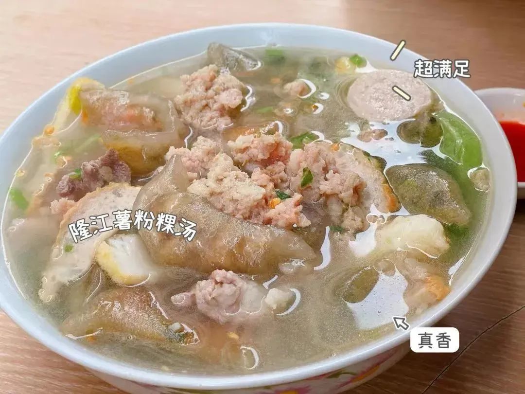 当地人就喜欢坐在街头细细品味这一碗汤,厚实莹润的粿条躺进熬煮的高汤中,扎实的配料与独特的美味交织在隆江的烟火气中,令人动容。