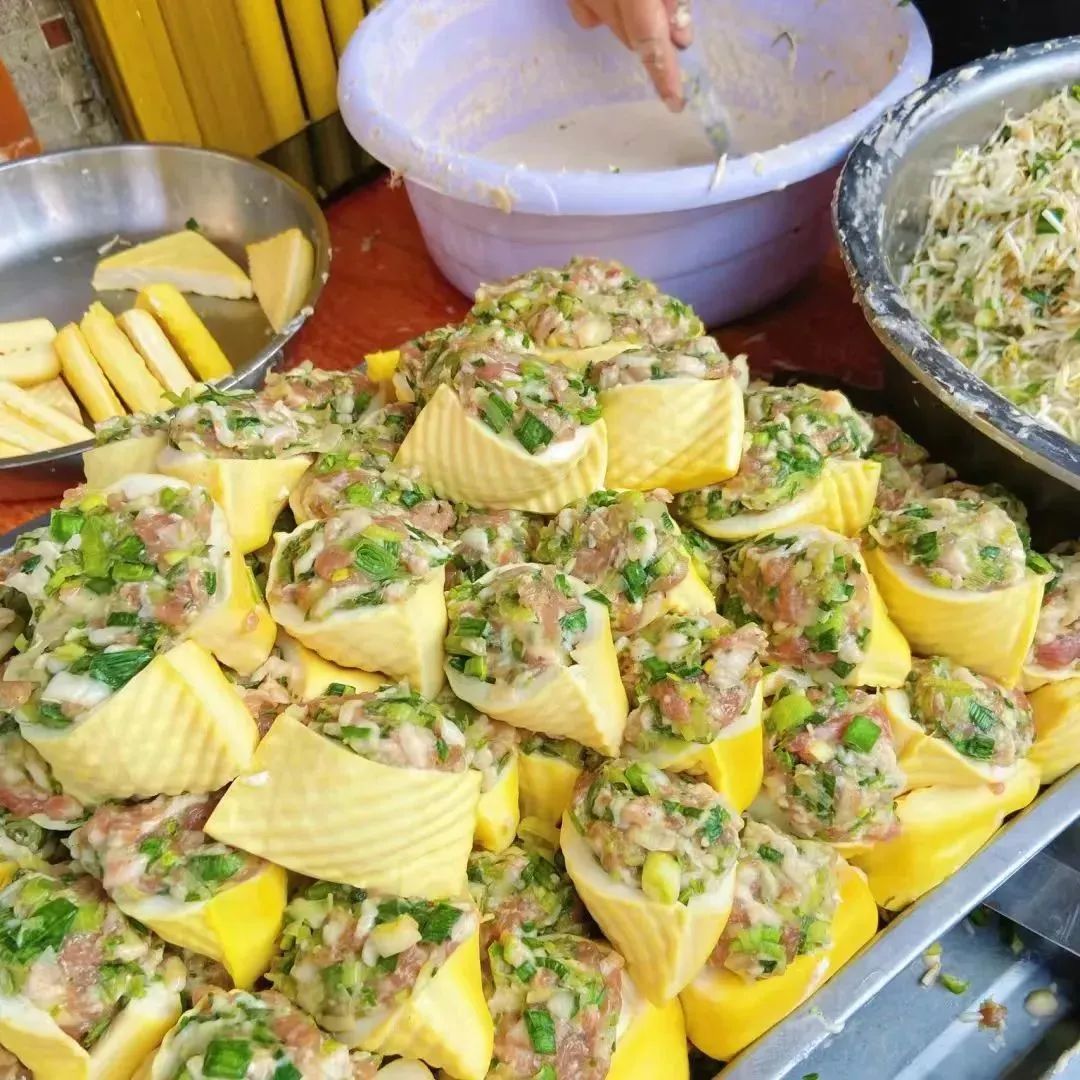 煮熟后的薯粉软韧Q弹,富有嚼劲。内里裹着不同风味却各有特色的秘制肉糜,白菜肉馅、蒜仔肉馅、胡萝卜肉馅、香菇肉馅……