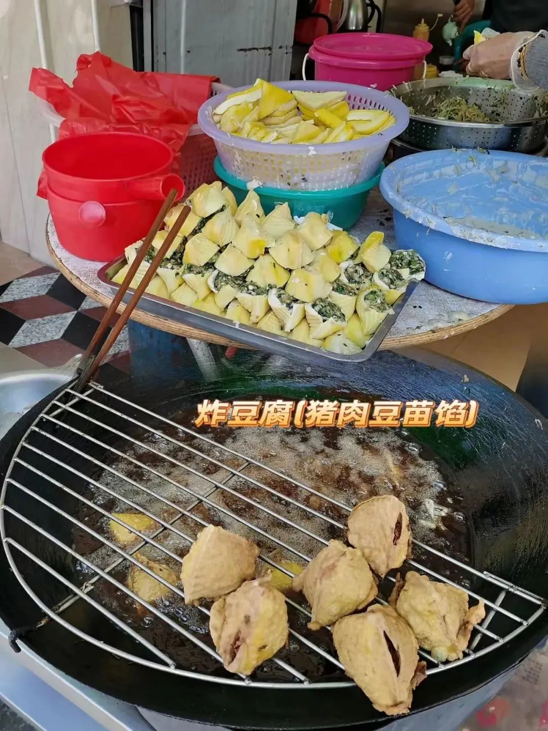 炸过的豆腐拥有了更多吸收馅料香味的空间。外皮的酥脆、豆干的韧劲、肉馅的咸香与豆芽的清爽交织在一起,口感丰富到令人咂舌,好吃到颤抖。