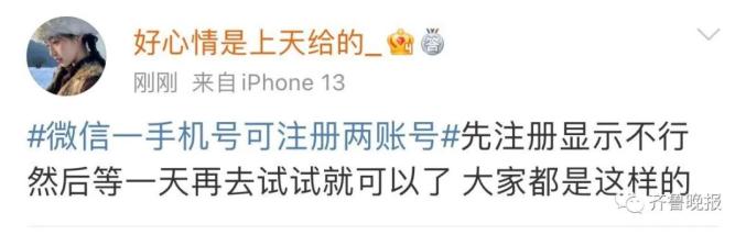 #微信一手机号可注册两账号#