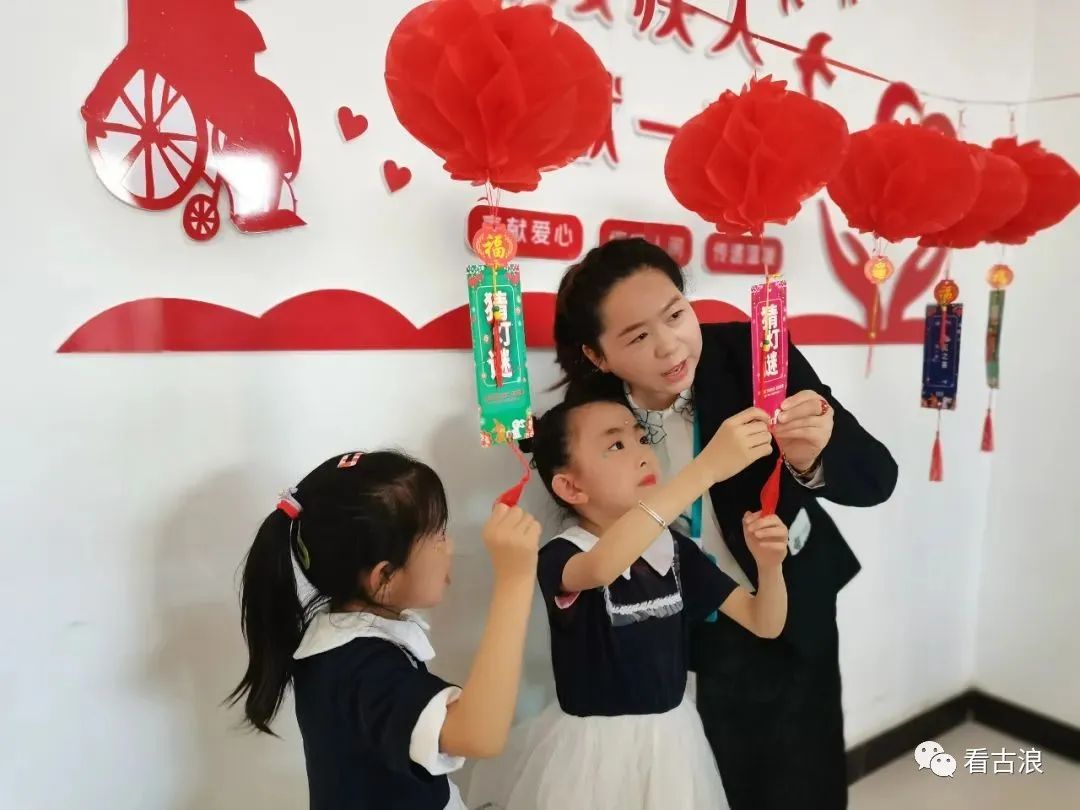 人们赏花灯,猜灯谜