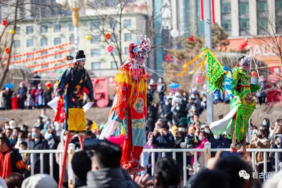 踩高跷的人往往装扮戏曲折子,