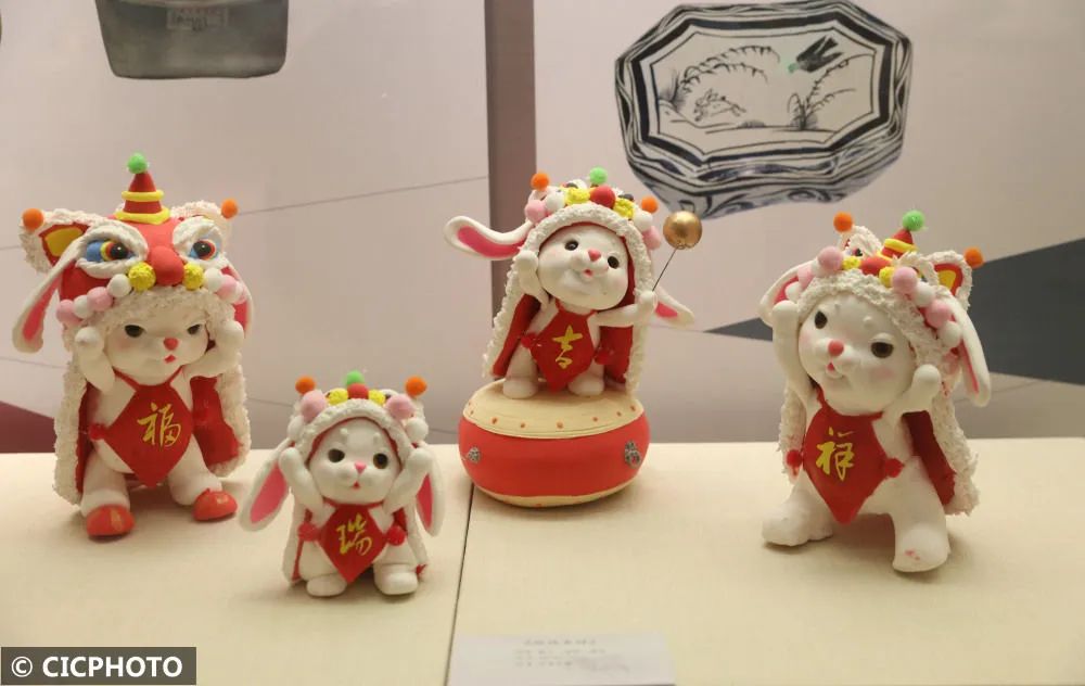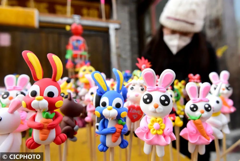 ↑2023年1月26日在河北省邯郸市回车巷历史文化街区拍摄的“兔子”面塑。CICPHOTO/郝群英 摄
