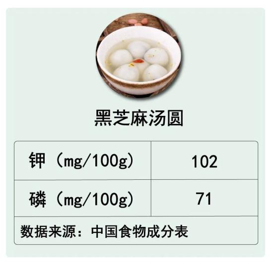 汤圆的馅料一般大部分是黑芝麻、花生、红豆。肾功能不全,尤其是肾衰竭、透析的肾友可能会担心“汤圆、元宵的钾磷含量高,不敢吃。”