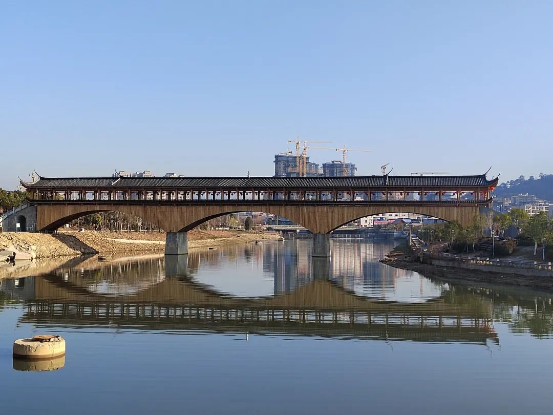 1月24日,兔年正月初三的那个清晨,在寒意森然中,我一个人来到了紫桥旁。我变换着角度,认真观察着这座崭新而静静伫立的廊桥。世上的桥有很多种,但廊桥在世界桥梁史上唯中国有之,全国现存不到200座。因此,这座刚刚建成的廊桥对古田人来说也弥足珍贵。