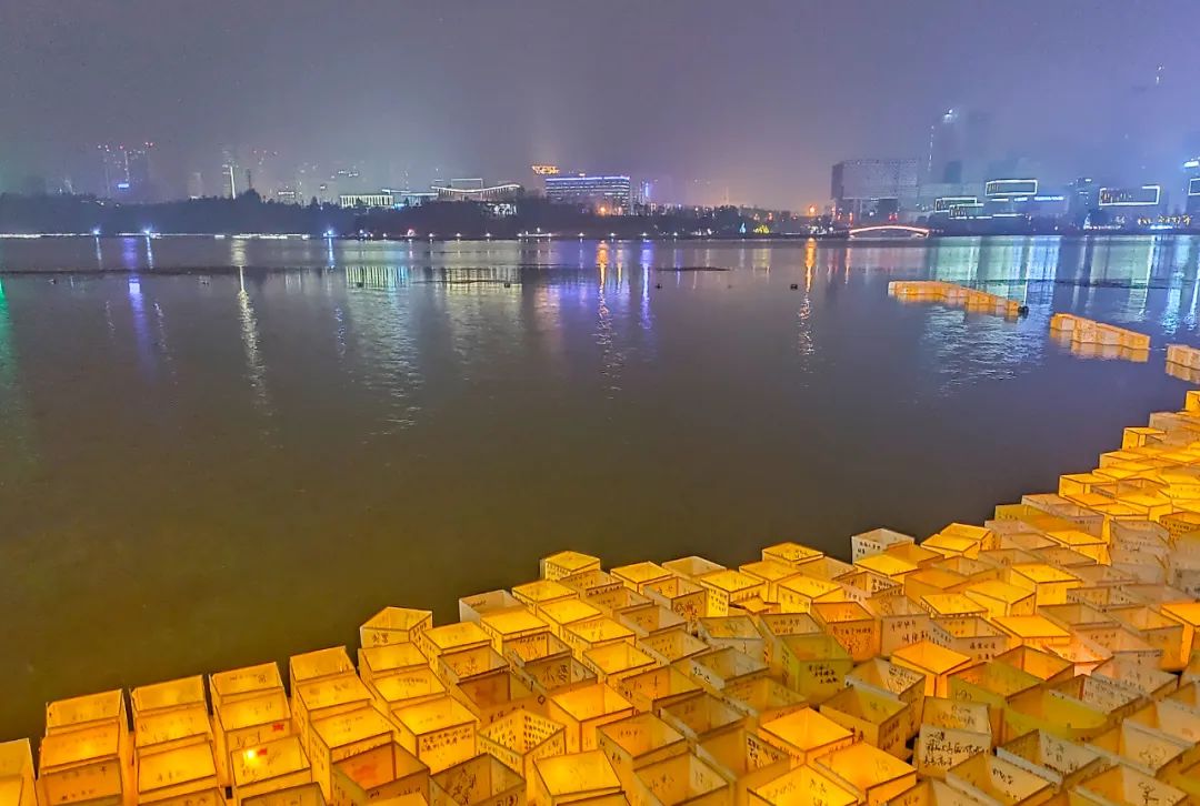 湖面水灯星星点点