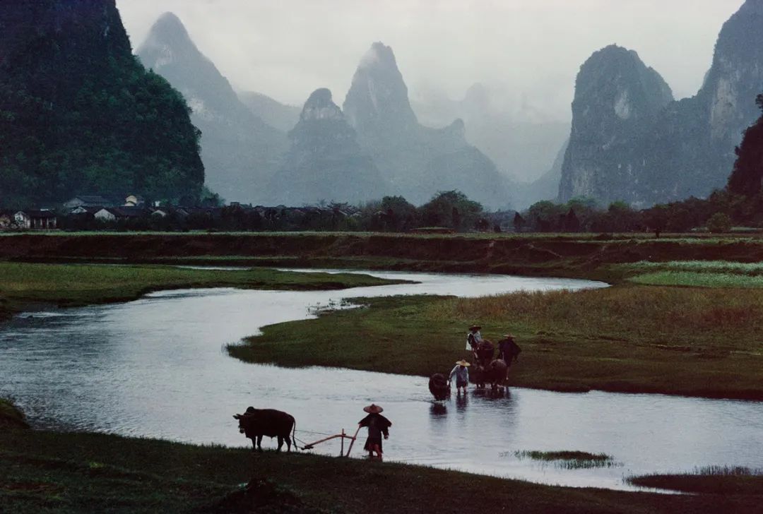 农夫给水牛冲洗,阳朔兴坪,1980年告别一个时代
