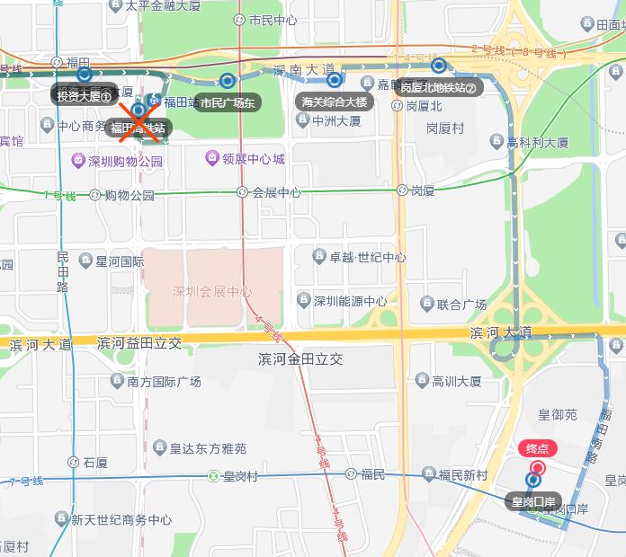 往皇岗口岸方向增加“岗厦北地铁站②”1个单边公交停靠站。