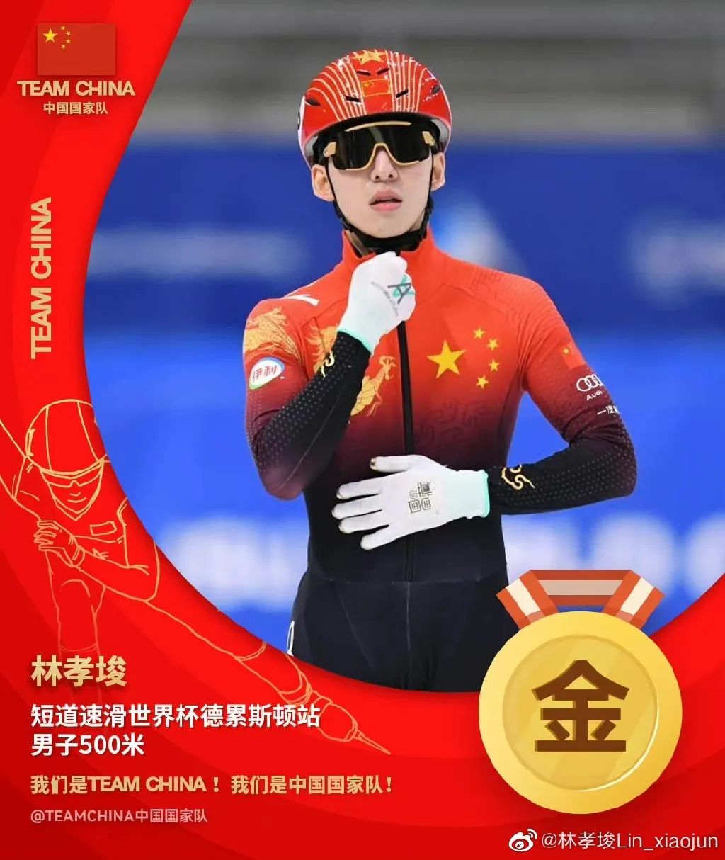 比赛结束后,中国短道队官方单独为林孝埈制作海报,祝贺林孝埈夺得冠军。