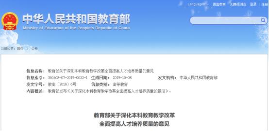 为了全面提高大学教学质量,提升本科生知识技能水平,2019年,教育部发布《关于深化本科教育教学改革全面提高人才培养质量的意见》,强调要严格教育教学管理,深化教育教学制度改革,引导教师潜心育人,加强组织保障。